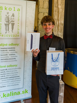 Našu školu reprezentovali aj naši žiaci z odboru čašník, servírka a hotelová akadémia. Náš Gregor Jevčák z III.K svojím výkonom zaujal odbornú porotu, získal celkové 3. miesto a odniesol si aj cenu najlepšieho výčapníka trenčianskeho kraja.