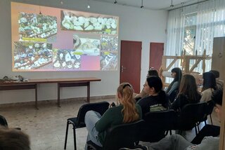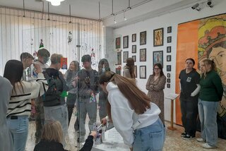 Žiaci si zároveň prezreli aj aktuálne výstavy: Tá naša Carpathia, Osobnosti múzea a Maľby na skle. Príjemným zakončením návštevy múzea bola možnosť si maľbu na sklo aj vyskúšať.