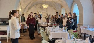 V rámci zážitkového vzdelávania sme zrealizovali dňa 18.11.2025 exkurziu do novozrekonštruovaného kaštieľa vo Voderadoch, v ktorého historických priestoroch sa od minulého roka prevádzkuje štvorhviezdičkové ubytovacie zariadenie GOYA Vitality Hotel****. Exkurzie sa zúčastnili dve triedy hotelovej akadémie, IV.K a V.K a to v počte 36 žiakov. Majiteľka, Ing. Bohdalová, nám priblížila históriu a súčasnú víziu tohto zariadenia a služby, na ktoré sa chcú najviac zamerať. Eventová a marketingová manažérka nás previedli ubytovacími a stravovacími priestormi v hoteli a zoznámili nás s marketingovou filozofiou, personálnou politikou, organizačnou štruktúrou a manažérskymi postupmi. Odpovedali tiež na otázky študentov. Následne sme si prezreli aj park s atraktivitami, ktorý patrí ku kaštieľu. Študenti nahliadli do sveta luxusnejších služieb, čo bolo pre nich veľkým prínosom a tiež možnou pracovnou príležitosťou do budúcnosti.