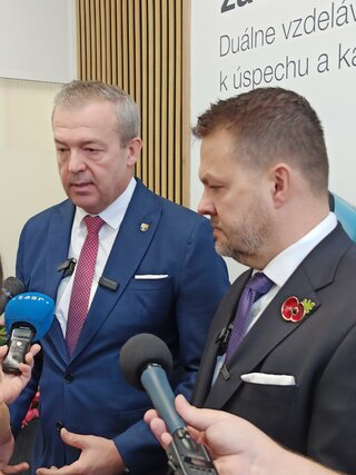 Zmluvu slávnostne podpísali minister pán Samuel Migaľ a predseda TSK pán Jaroslav Baška.