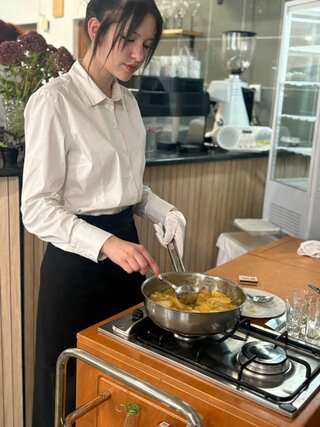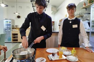Dňa 10. októbra 2025 žiaci odboru čašník a servírka v A klube pripravovali jesenné dezerty, ktoré flambovali a dokončovali pred očami hostí.