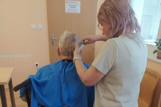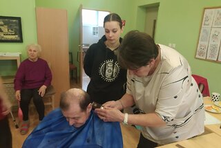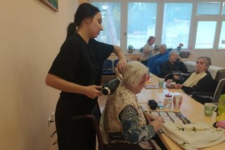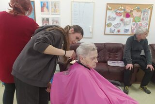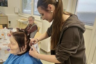 Študenti tried IV.F a III.B navštívili domov dôchodcov, kde seniorom upravili vlasy a spríjemnili deň milým prístupom a dobrovoľníckou pomocou.