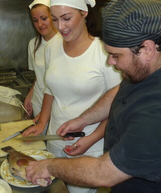 Počas stáže v gastronomických zariadeniach andalúzskej Malagy boli žiaci rozdelení podľa ich záujmu do prác v spracovaní morských produktov, ktoré poznáme my tu v strednej Európe ako morské „príšerky“ do spôsobu ich prípravy, servírovania a obsluhy. Praxovali pod vedením španielskych tútorov v centre Malagy v reštauráciách, kde turistický ruch neutícha počas celého roka a mali možnosť nielen vidieť ako sa masový cestovný ruch spája s kvalitou produktu. Sprevádzajúce osoby tejto pracovitej skupiny Mgr. Jana Placeková a Ing. Jozef Jakube dbali aj o rozvoj jazykovej zložky celého projektu, ktorou bola samozrejme španielčina, ale druhým povoleným jazykom bola angličtina, takže aj kolegovia angličtinári si môžu overiť mieru zlepšenia jazykových zručností.