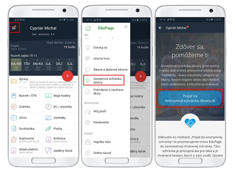Elektronická schránka je dostupná priamo v aplikácii a na webovej stránke EduPage. Podnet odošlete jednoducho a úplne anonymne – vaše meno sa nezobrazí. Vaše podnety bude riešiť školský podporný tím.